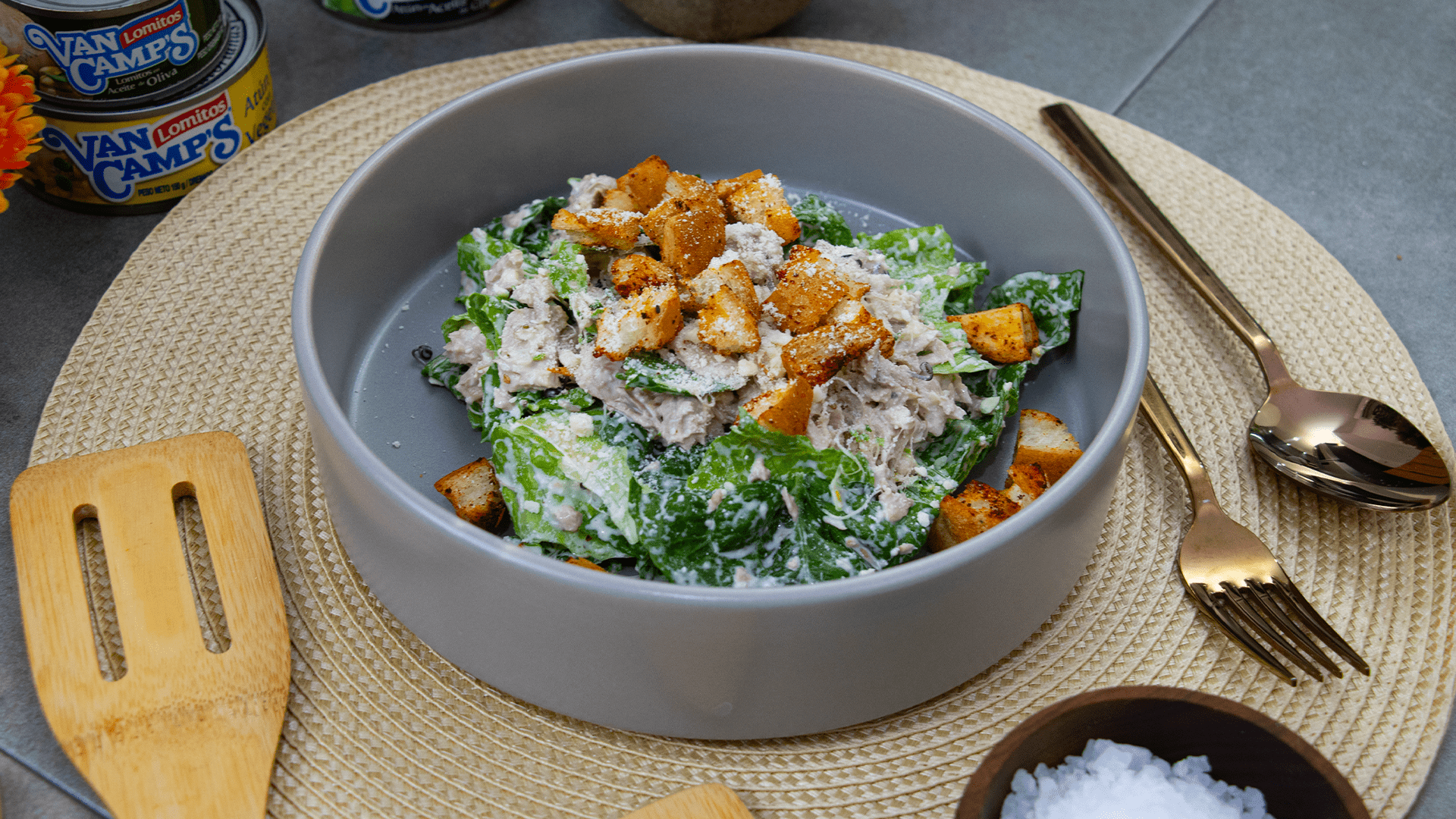 - ¡Ya esta lista esta ensalada internacional con toque casero como te gusta y con los lomitos de atún Van Camp’s!