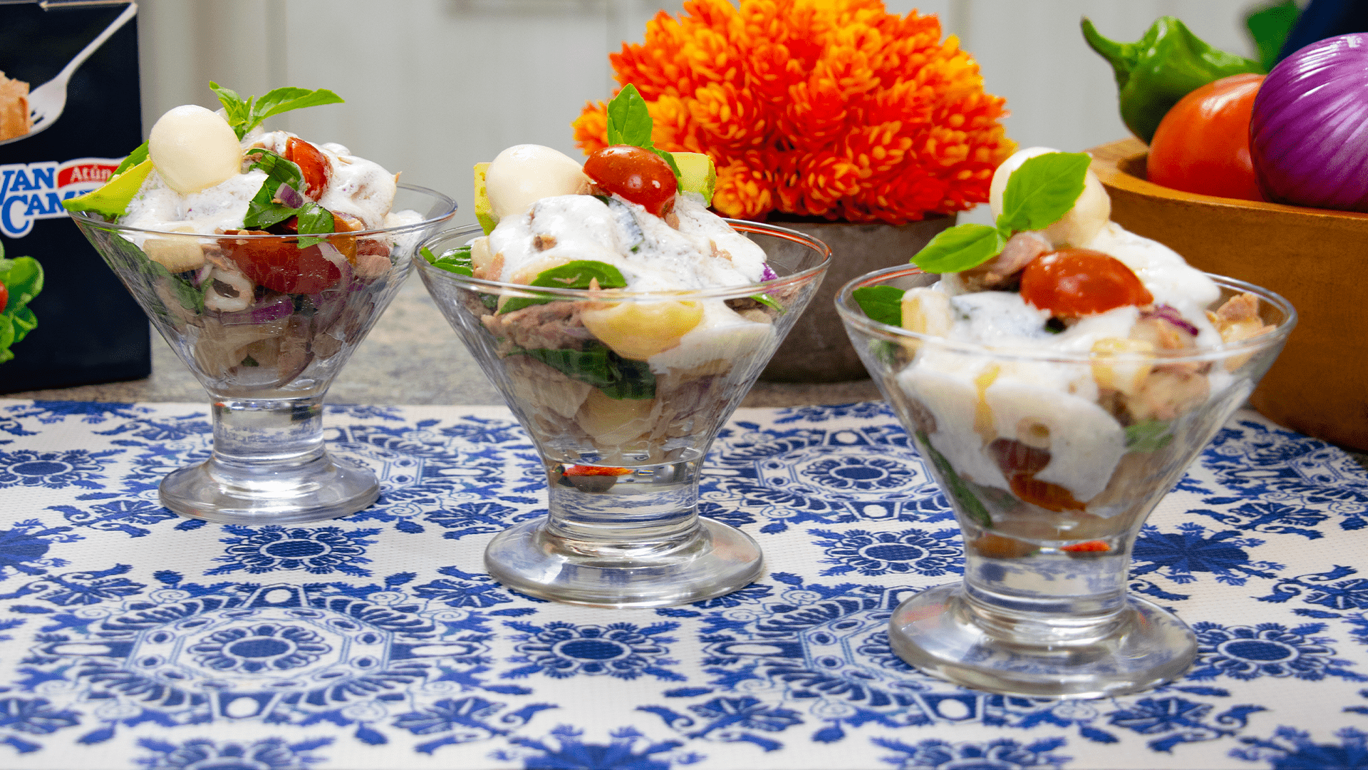 - También, añade una taza de albahaca y una deliciosa lata de lomitos de atún en aceite de girasol de 184 g Van Camp’s.