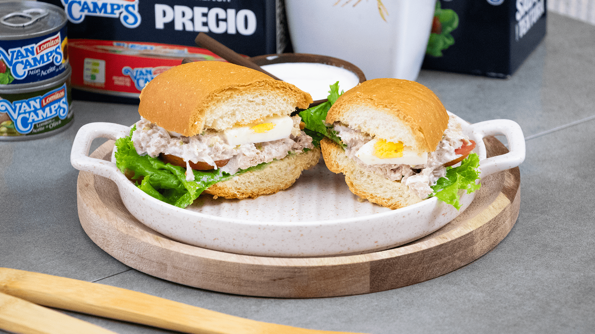 El Sándwich cremoso de atún está preparado con ingredientes sencillos pero poderosos como: Pan fresco (integral o blanco, según tu preferencia), Lomitos de atún Van Camp’s, Huevo cocido, Vegetales frescos como lechuga, tomate o cebolla y un toque cremoso (puede ser yogur natural o mayonesa ligera).